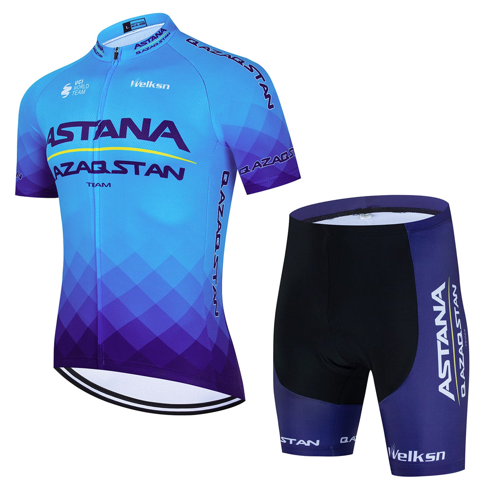 Astana Blue MTB Short Sleeve Cycling Jersey Matching Kits