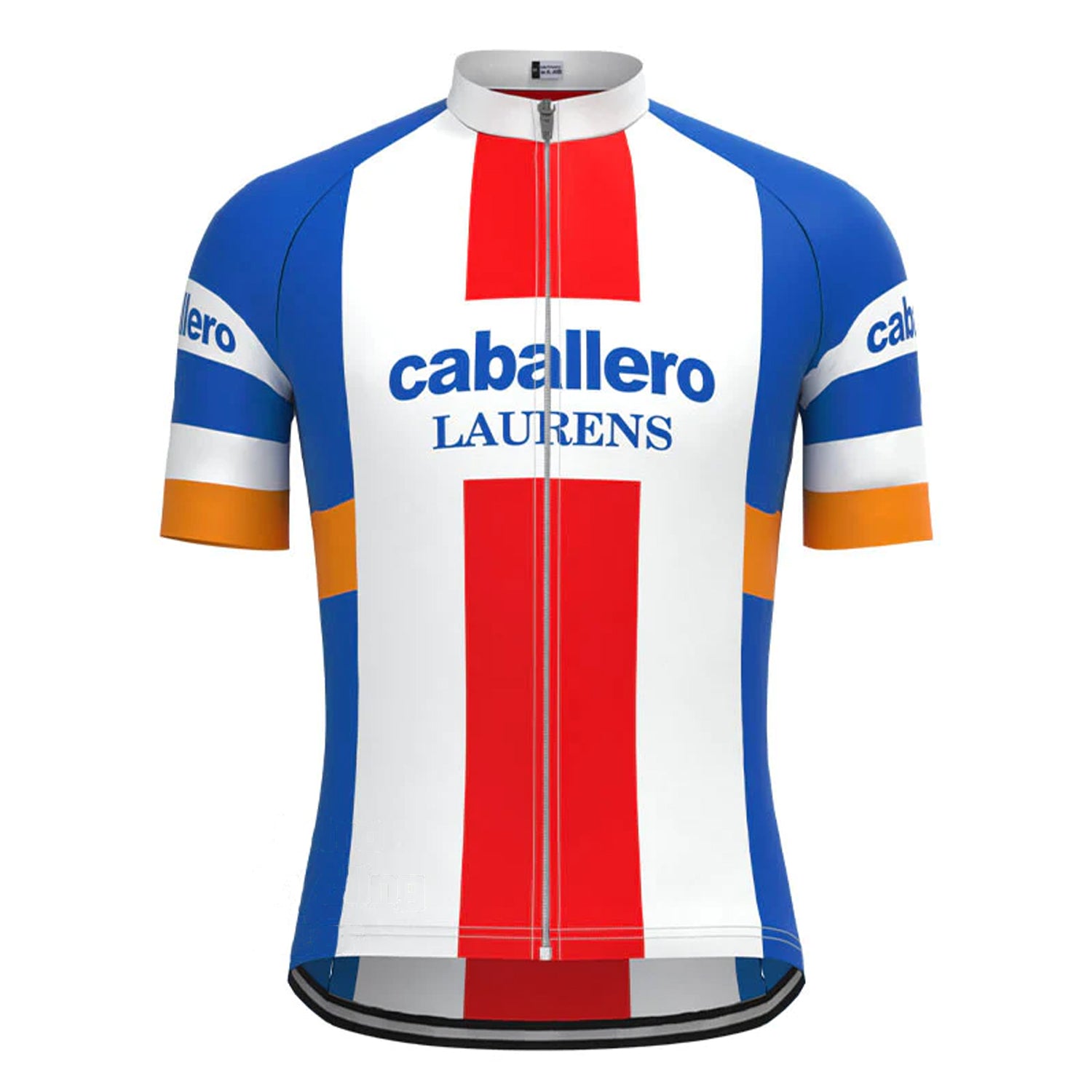 Caballero Blue White Red retro cycling jersey is made with breathable & moisture-wicking fabric. The material keeps this vintage jersey dry quickly, lightweight with comfortable. Stay cool and stylish with this 100% polyester, moisture-wicking jersey suitable for all seasons. The LEMBO 140 GSM polyester makes this jersey more durable, anti-Pilling, anti-Shrink, and anti-wrinkle.