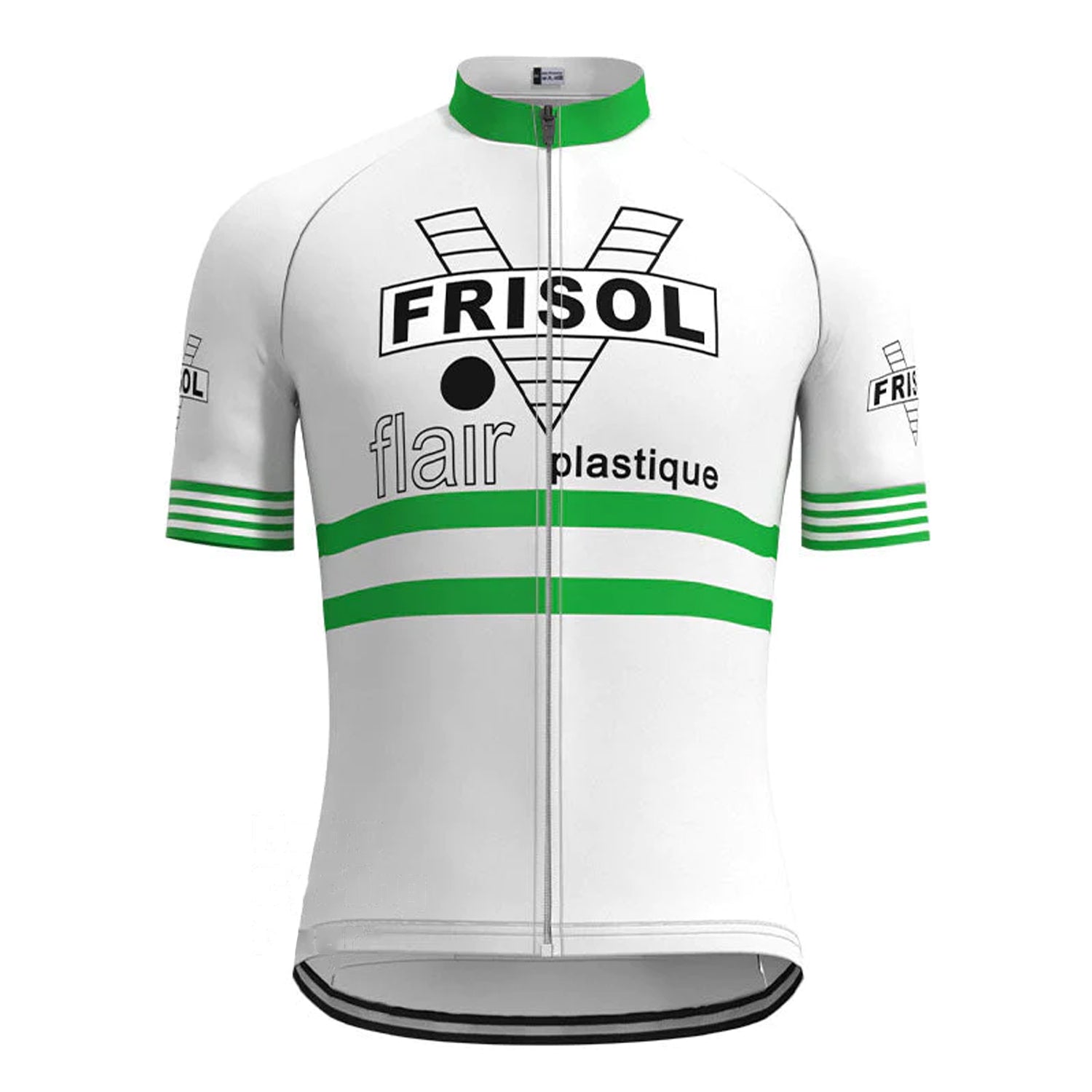Frisol Green retro cycling jersey is made with breathable & moisture-wicking fabric. The material keeps this vintage jersey dry quickly, lightweight with comfortable. Stay cool and stylish with this 100% polyester, moisture-wicking jersey suitable for all seasons. The LEMBO 140 GSM polyester makes this jersey more durable, anti-Pilling, anti-Shrink, and anti-wrinkle.
