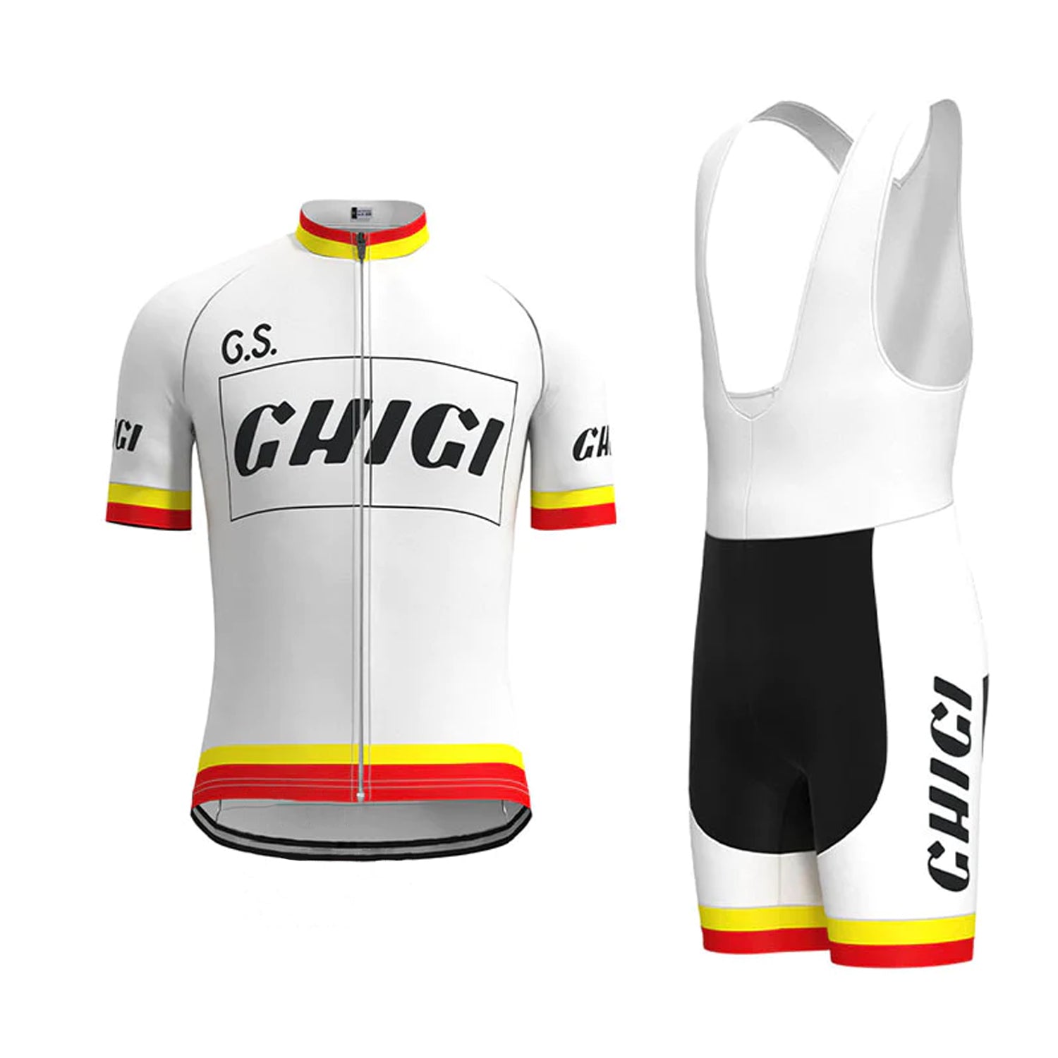 Ghigi White Vintage Short Sleeve Cycling Jersey Matching Set
