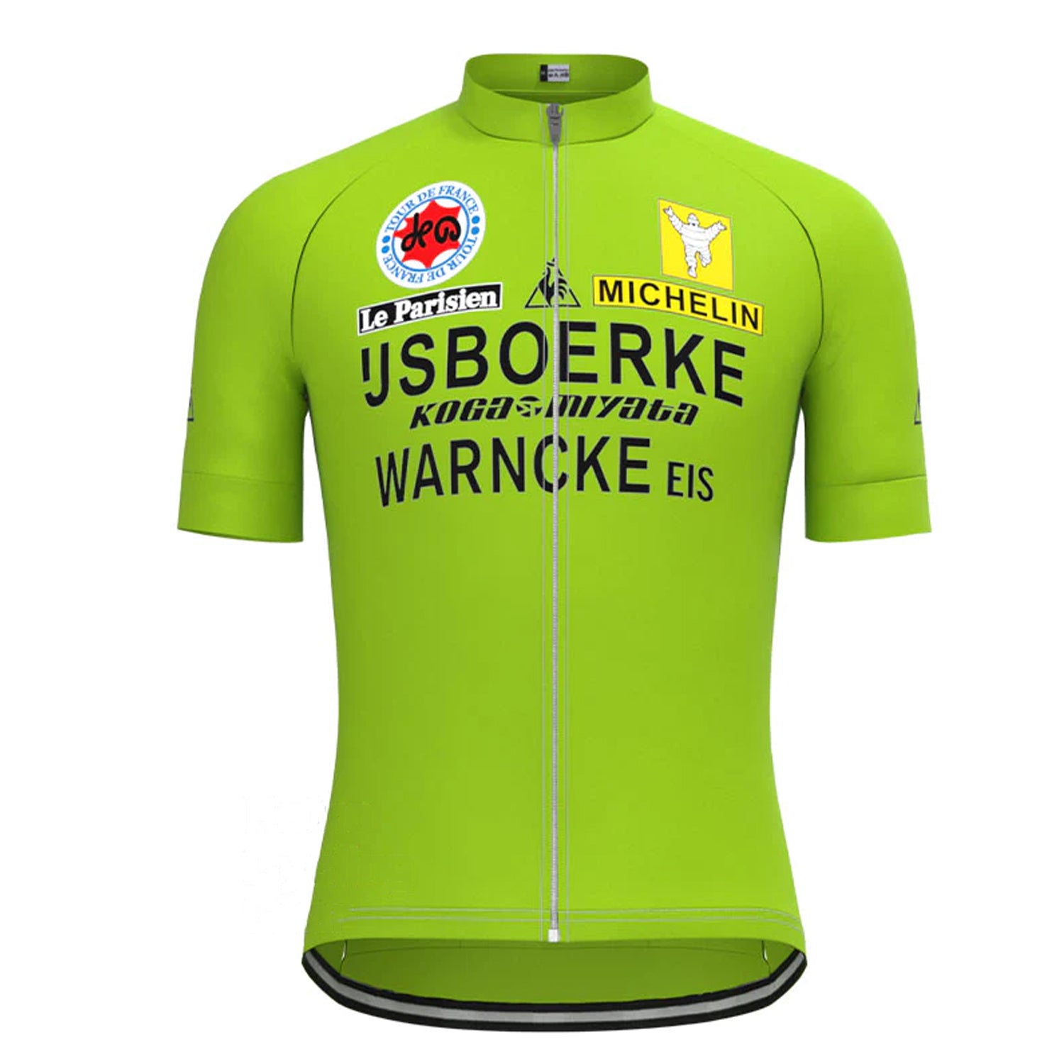 IJsboerke Green retro cycling jersey is made with breathable & moisture-wicking fabric. The material keeps this vintage jersey dry quickly, lightweight with comfortable. Stay cool and stylish with this 100% polyester, moisture-wicking jersey suitable for all seasons. The LEMBO 140 GSM polyester makes this jersey more durable, anti-Pilling, anti-Shrink, and anti-wrinkle.