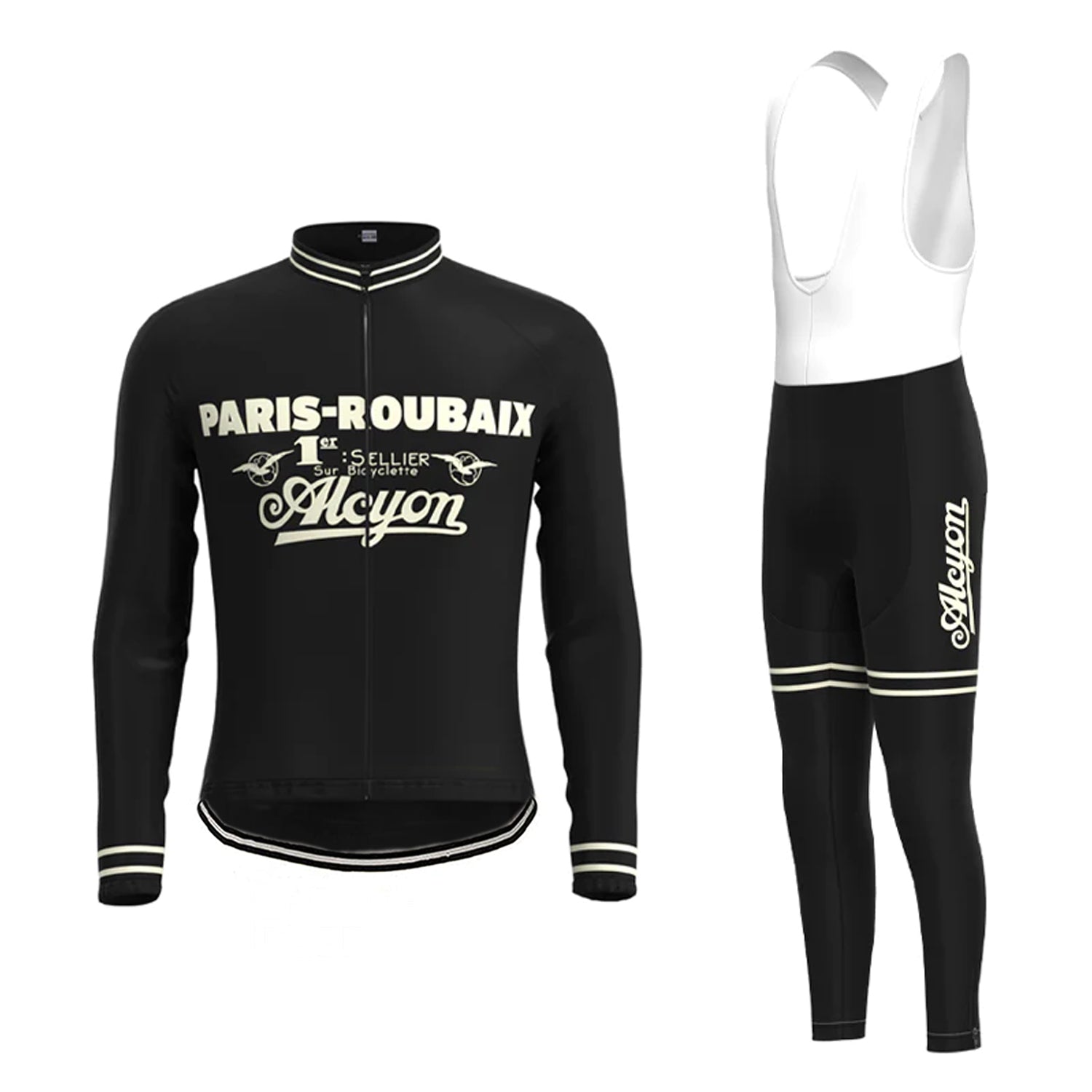 Paris Roubaix Black Long Sleeve Cycling Jersey Matching Set