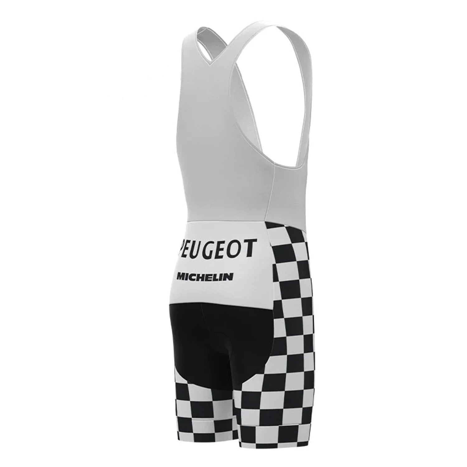 Peugeot Black Vintage Cycling Bib Shorts provide a superior cycling experience. Constructed with an aerodynamic design, the bib shorts offer a comfortable fit and an ergonomic structure for maximum breathability. State-of-the-art fabrics provide durable protection and reduce drag while the strategically placed seams preserve flexibility and mobility. These shorts provide superior performance and support for any cycling enthusiast.