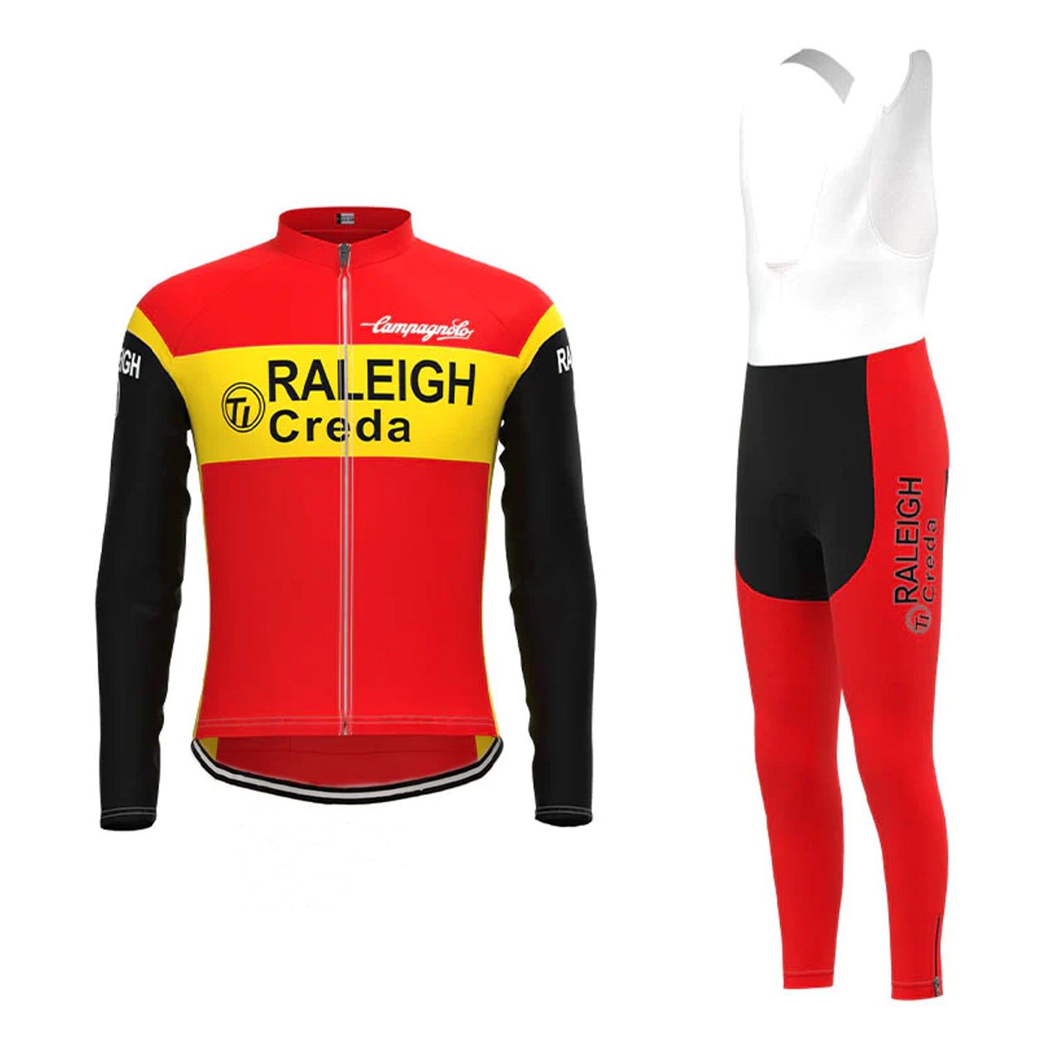 TI Raleigh Yellow Red Vintage Long Sleeve Cycling Jersey Matching Set
