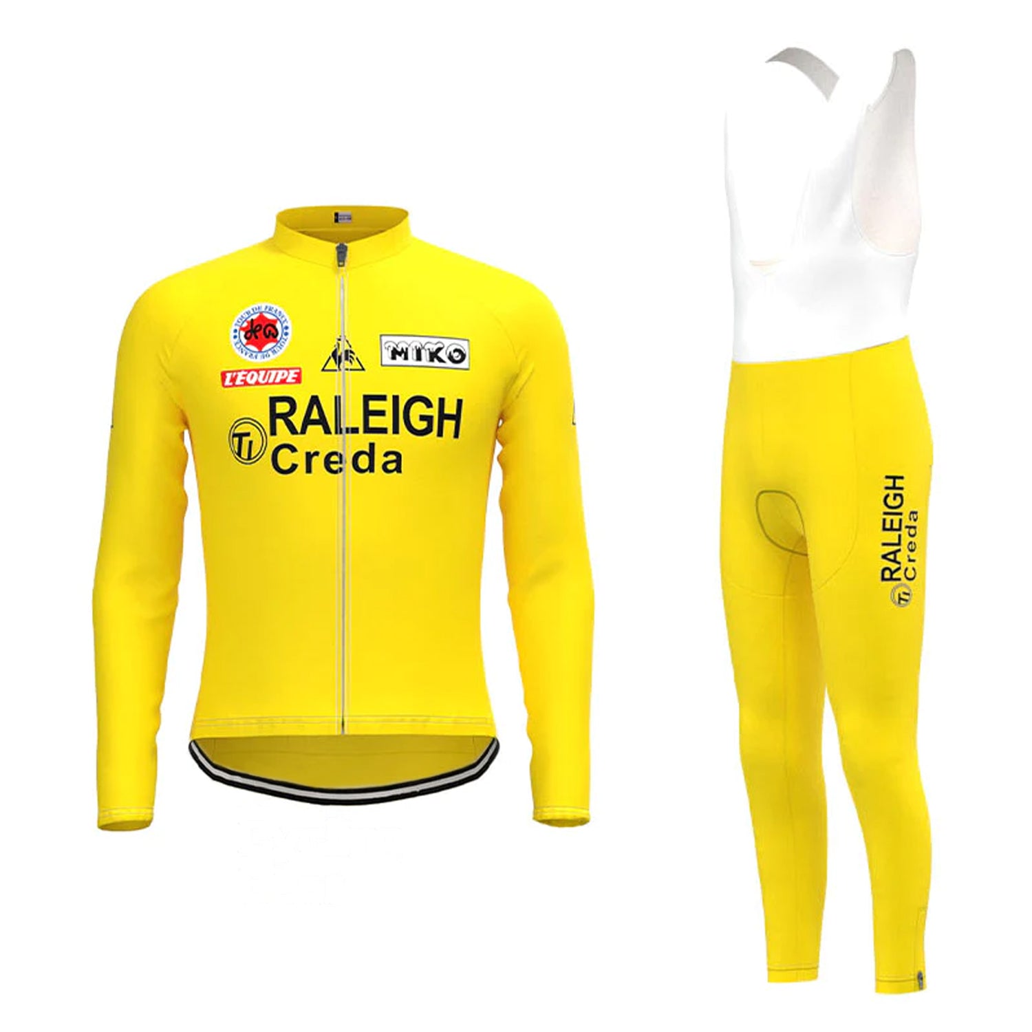 TI RALEIGH Yellow Vintage Long Sleeve Cycling Jersey Matching Set